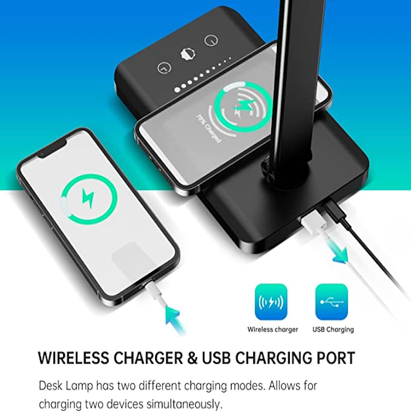 • LADER TELEFON & TIMERFUNKSJON: Lad enheten din via USB-porten. Utstyrt med en automatisk avstengnings-timer som slår seg av etter 30 eller 60 minutter. Anbefalt strømkilde: 5V 1-2A. (Strømadapter følger med lampen.)