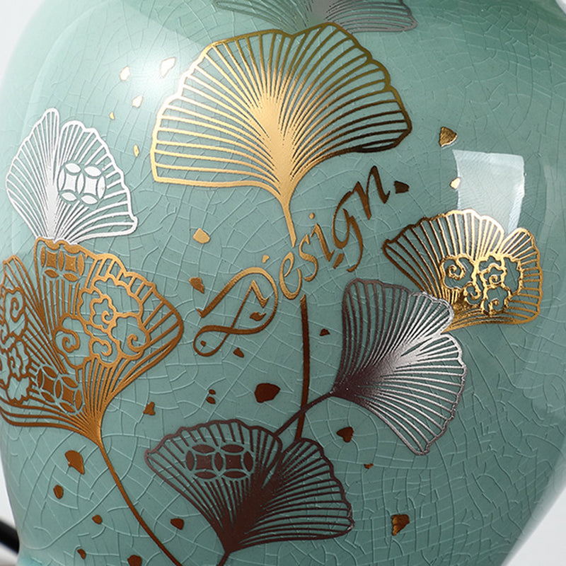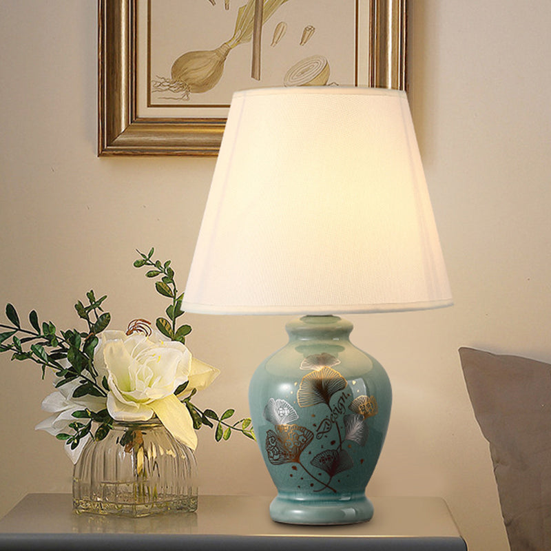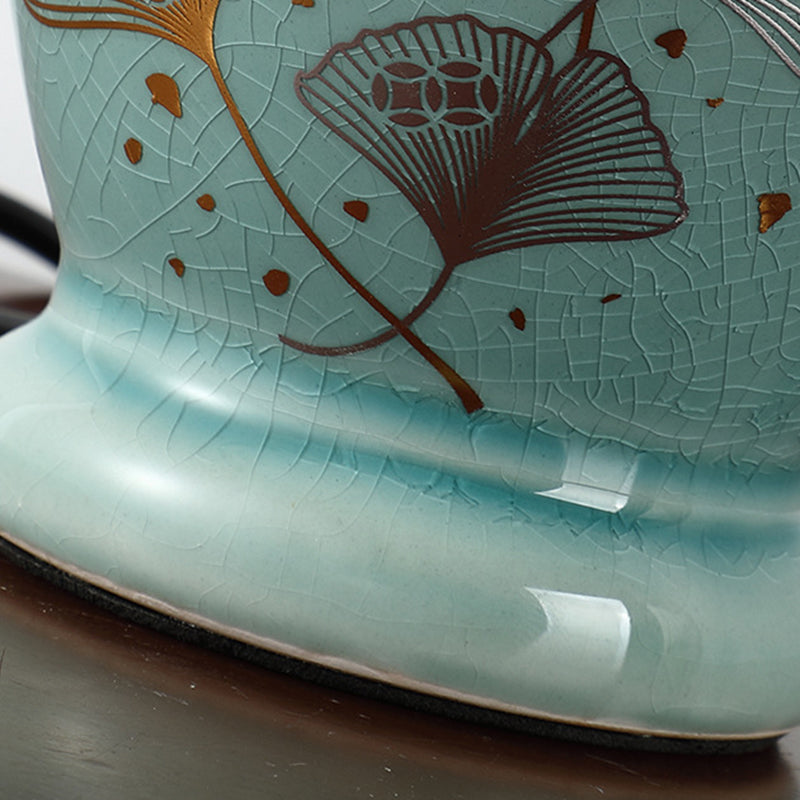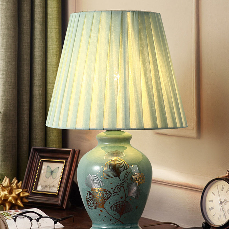 Norvo | Tradisjonelt kinesisk blomsterdesign rund vifte stoff keramikk 1-lys bordlampe til stuen