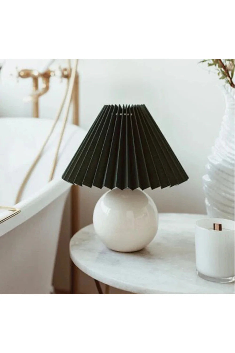 Norvo | Tradisjonelt kinesisk blomsterdesign rund vifte stoff keramikk 1-lys bordlampe til stuen