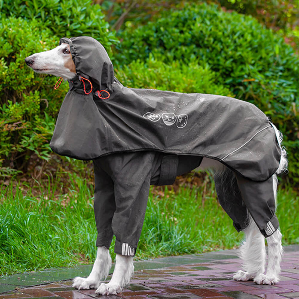 Vanntett regnfrakk for hunder med fire ben og refleksmønsterhette