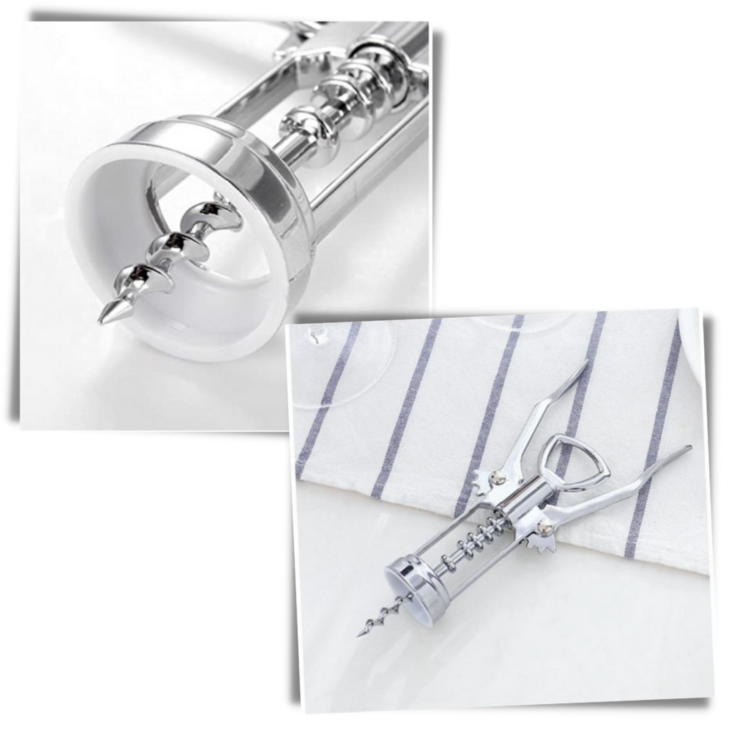 Denne vinåpneren er konstruert for å være lettfattelig for alle brukere. Den har et brukervennlig vingedesign som gir bedre grep. I tillegg er det en plastflaskeguide som sikrer at korkskruen passer vinflasker i alle størrelser .