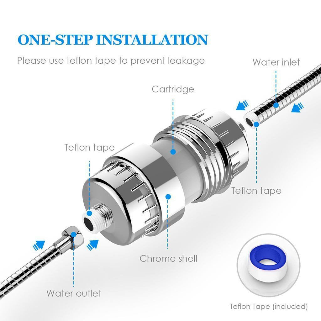 - INGEN VERKTØY, INSTALLASJON PÅ 2 MINUTTER : Skru av dusjhoder, skru inn vårt universelle høytrykk dusjfiltret, og sett deretter dusjhode på plass igjen – Ingen verktøy nødvendig. Det er garantert å GI RESULTATER og fungerer med alle dusjtyper, inkludert faste, regn og håndholdte dusjhode filtre, og vil gjøre at du føler deg 100% FORNØYD med din sunnere hud, hår og negler eller pengene tilbake.