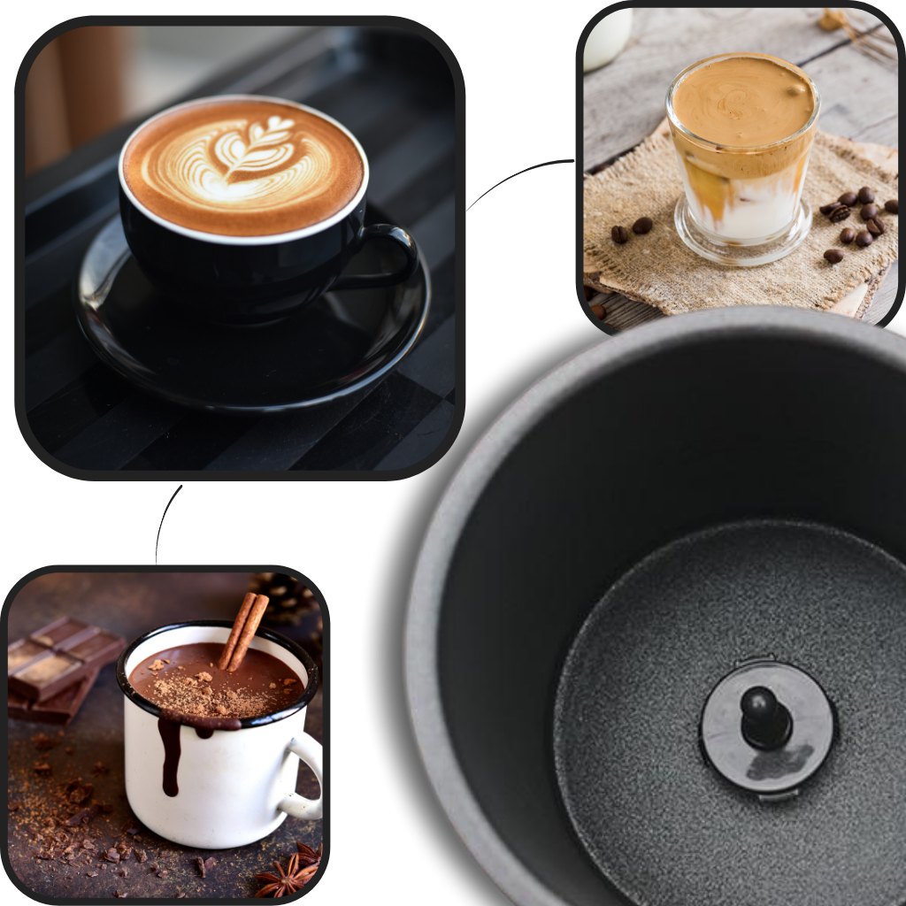 Med ett enkelt trykk kan du oppnå den perfekte melkeskummen til dine favorittdrinker. Denne automatiske melkeskummeren gir deg muligheten til å lage 4 ulike melkestrukturer: varm og tett skum, varm og lett skum, kaldt skum, og vanlig varmt skum. Ikke mer behov for å besøke kafeer for å nyte en deilig kaffe, latte eller cappuccino. Nyt en smakfull kopp kaffe når som helst, selv på hektiske morgenstunder!