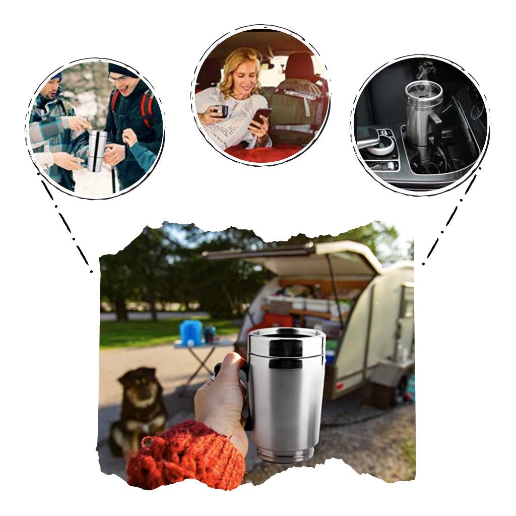 Vannkokeren er perfekt til bilen, kontoret, for camping, fotturer og piknik. Den kan brukes til å lage te, instant nudler, melk og kaffe. Reisekokeren kommer med et avtagbart krus i bunnen for å kunne drikke enkelt og behagelig. Varmeapparatet har også en sklisikker matte i bunnen for ekstra isolasjon og støtte. Et gummigrep på toppen gjør det enkelt å åpne med en hånd.