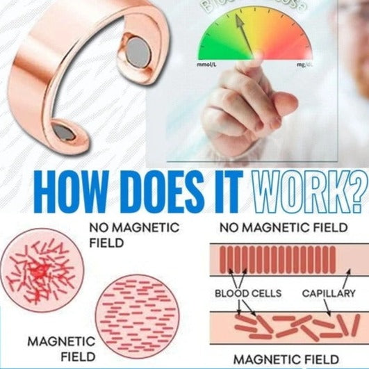 Statisk magneter hjelper med insulinproduksjon. Gir energi til kroppen og stimulerer næringsrikt blodflow for å revitalisere stoffskiftet. Enkel å bruke og ikke-invasiv. Bare sett på ringen, som gjør alt arbeidet for deg.