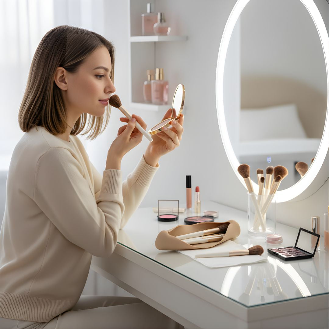 Skapt for reiselystne individer og skjønnhetseksperter, beskytter det støv- og vannavstøtende silikonskapet børstene mot fuktighet, smuss og skader. Den fleksible, men robuste konstruksjonen tilpasser seg alle størrelser på børster, og opprettholder både form og hygiene uansett hvor reisen bringer deg.