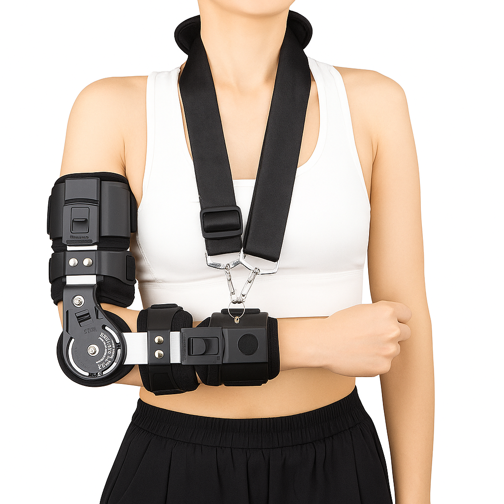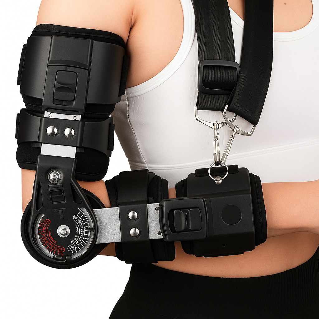 Den ComforMotion Albue Støttebandasjen har en fullt Justerbar ROM Teleskop, som gir deg muligheten til å tilpasse bevegelsesmønsteret ditt med nøyaktighet. Enten du trenger en stram begrensning under rehabilitering eller ønsket moderat fleksibilitet for bevegelse, tilpasser bandasjen seg dine spesifikke behov. Sammen med sitt Myke Pustende Materiale, sikrer det optimal luftstrøm og hudvennlig komfort – ideelt for langtidsbruk.