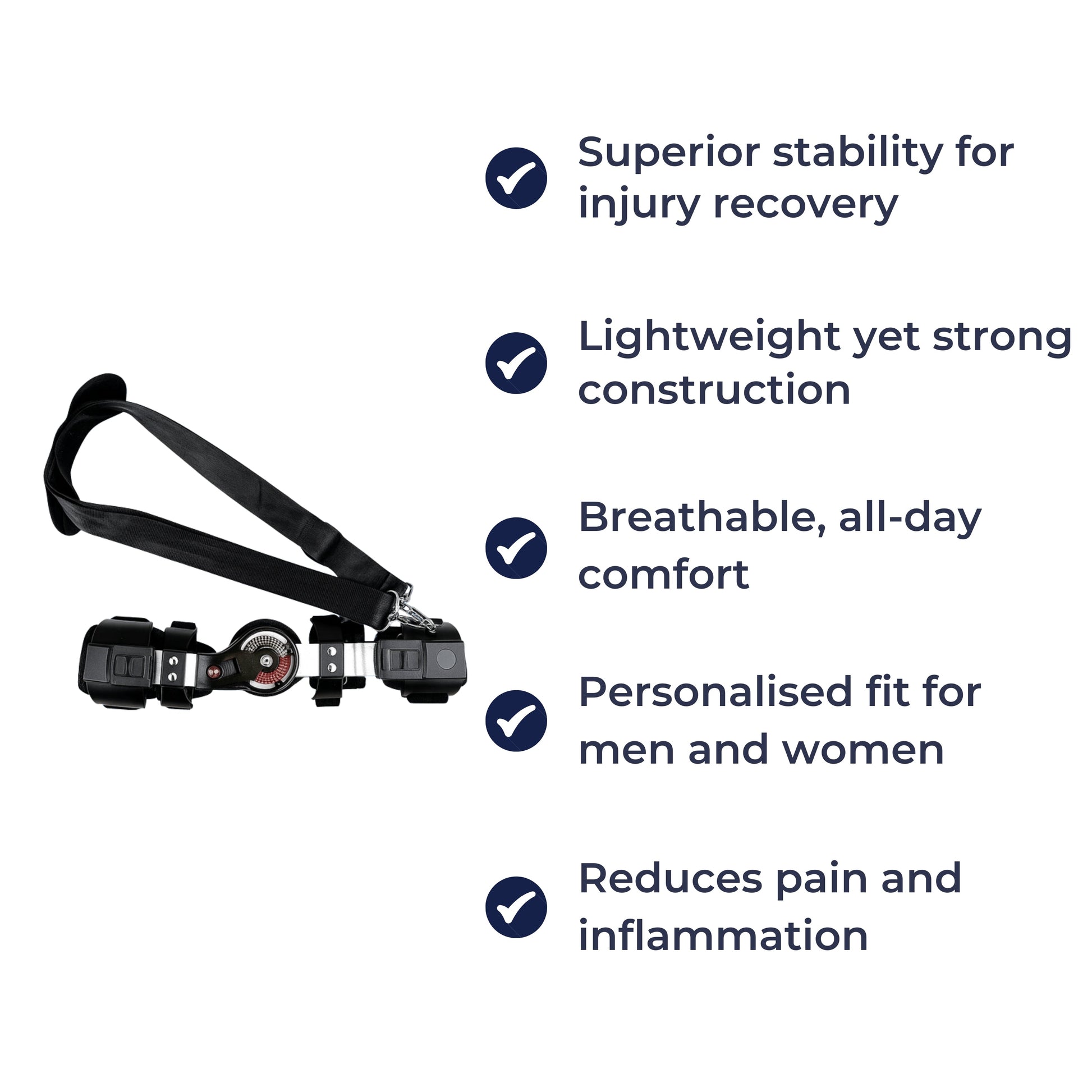 Justerbar ROM-dial – Mykt pustende materiale – Komfort hele dagen for smertelindring og restitusjon Norvo