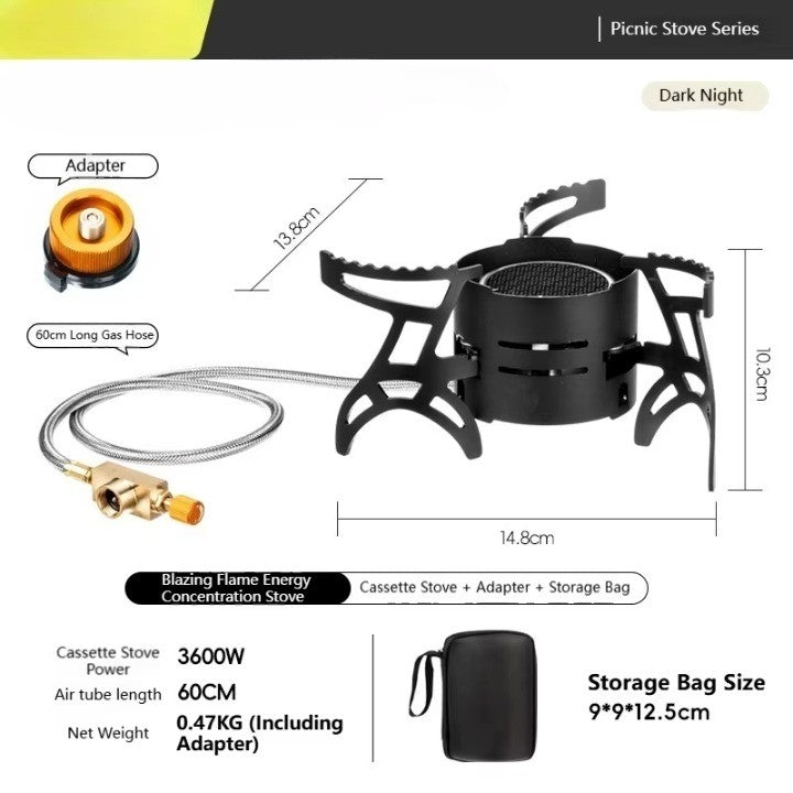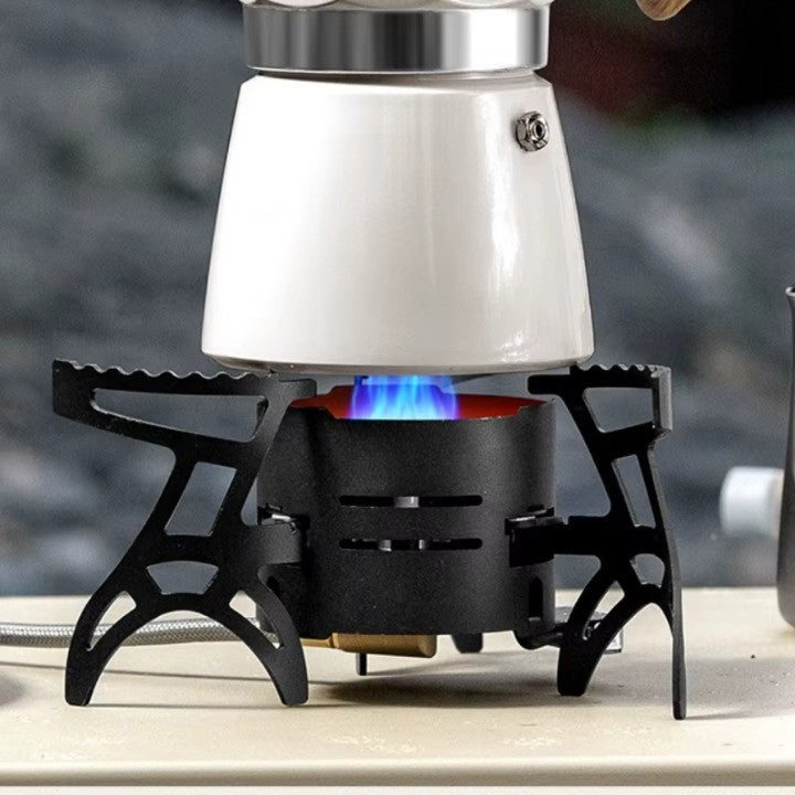 Med en kraft på 3600W kan den kaste vann eller varme måltider ganske raskt. Den medfølgende luftslangen har en lengde på opptil 60 cm, noe som gir deg økt fleksibilitet i plasseringen av gasskilden. Til tross for sin kompakte størrelse gir den stabilitet for kokeutstyret og er enkel å rengjøre etter bruk.