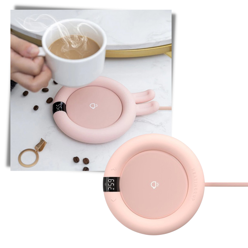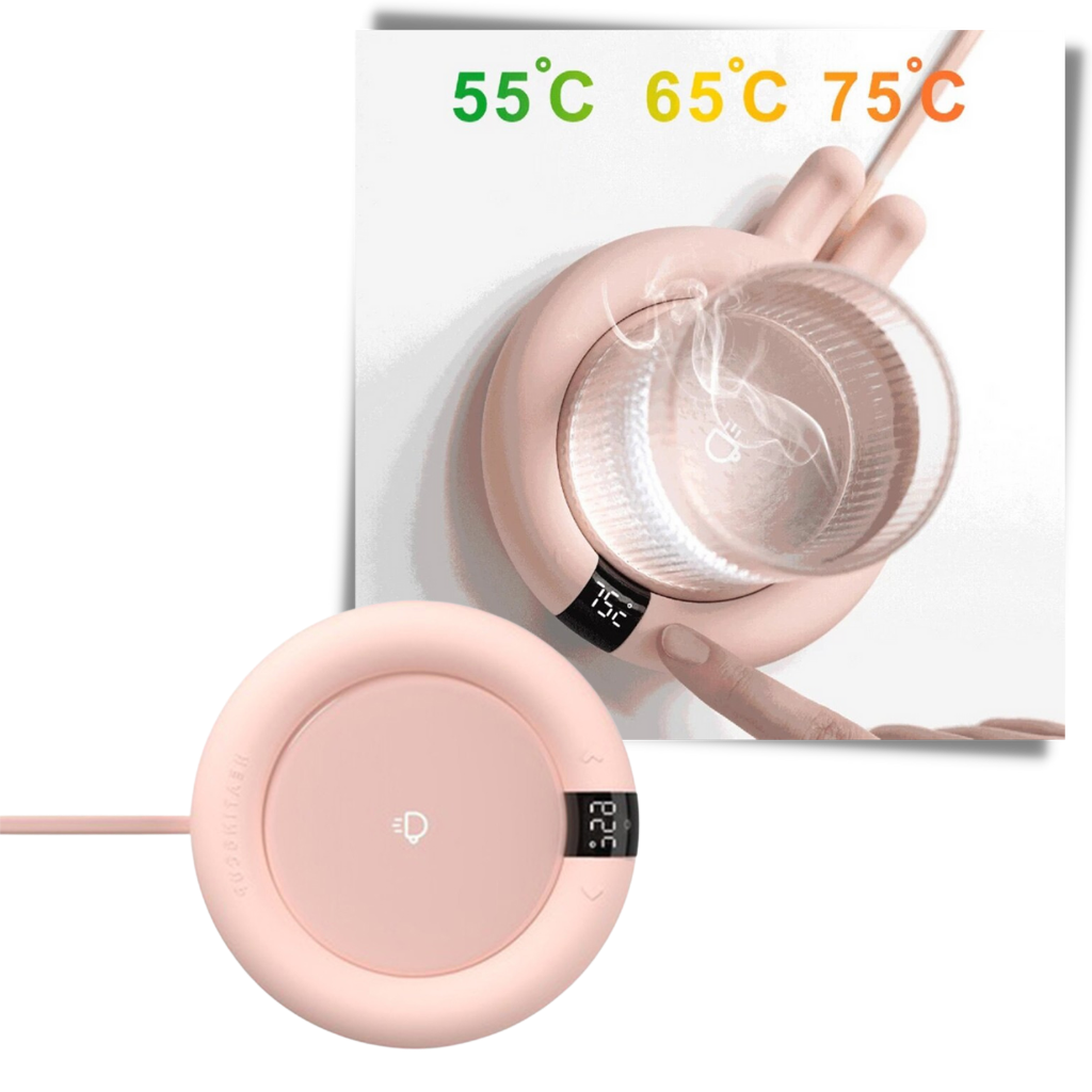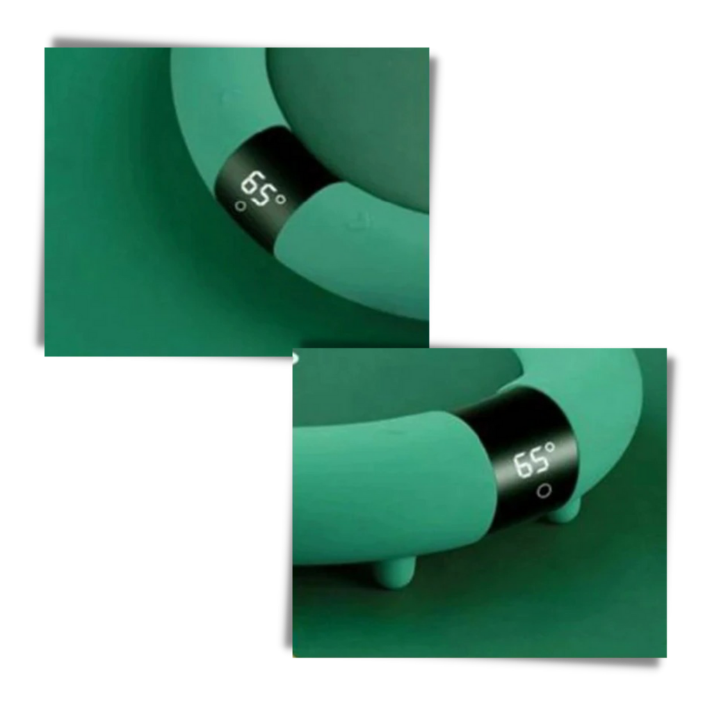 Still inn ønsket temperatur med letthet ved hjelp av den innebygde smart visuelle berøringsskjermen. Tallene vises tydelig slik at du enkelt kan betjene dem. Nyt koppvarmerens elegante design. Takket være designen vil den passe perfekt på kontoret eller arbeidsområdet ditt. Du kan velge mellom tre farger – rosa, kaninrosa og grønn. Velg den du liker best!