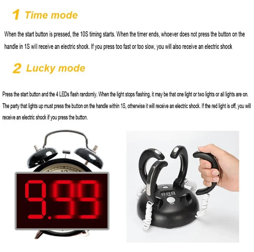 Forsterk spenningen ved ditt neste samvær med Lightning Reaction Reloaded Electric Shock Revenge Shocking Bar! Dette humoristiske partyspillet tilfører latter, forventning og vennskapskonkurranse til enhver gruppe. Konstruert av høy kvalitet, miljøvennlig ABS-materiale som er luktfritt og trygt, tilbyr det to elektrisk spennende spillmoduser—tidsrespons og lykke-sjokk—som sikrer en unik opplevelse i hver runde.