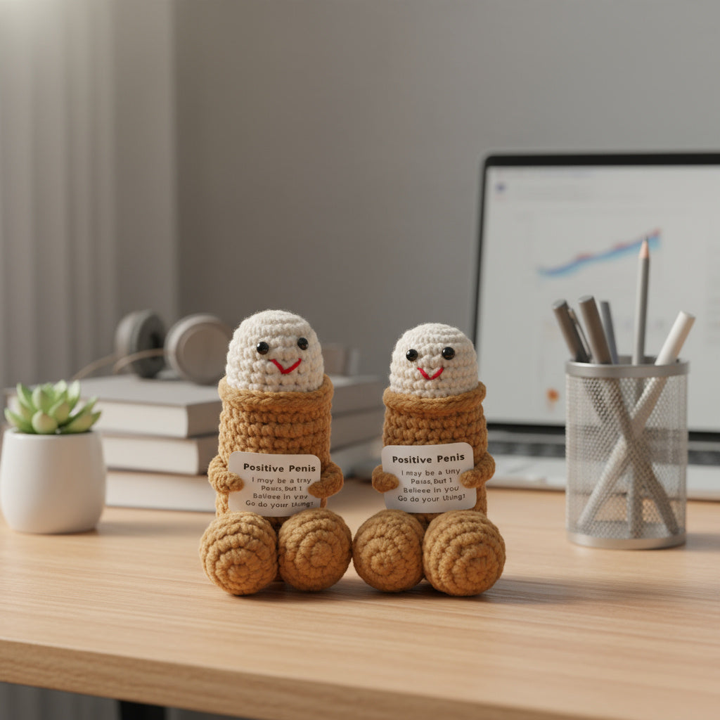 Utformet for å skape smil og latter, er denne hekledukken kompakt, lett og enkel å ta med seg. Uansett om den plasseres på kontorpulten, gis til en venn, eller beholdes som en morsom påminnelse om positivitet, er dette et unikt objekt som blander humor med behag.