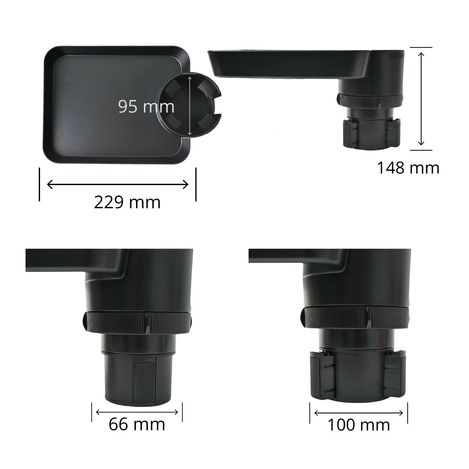 Før du går til innkjøp av produktet, vennligst vurder nøye dimensjonene som vises i bildene og se den instruktive videoen som forklarer hvordan du bruker det. Dette er svært viktig for å sjekke om størrelsen på brettet og den grunnleggende diameteren på koppholderen passer til ditt behov. Vi håper å kunne gi en liten hjelpende hånd for å gjøre hverdagen din enda lettere.