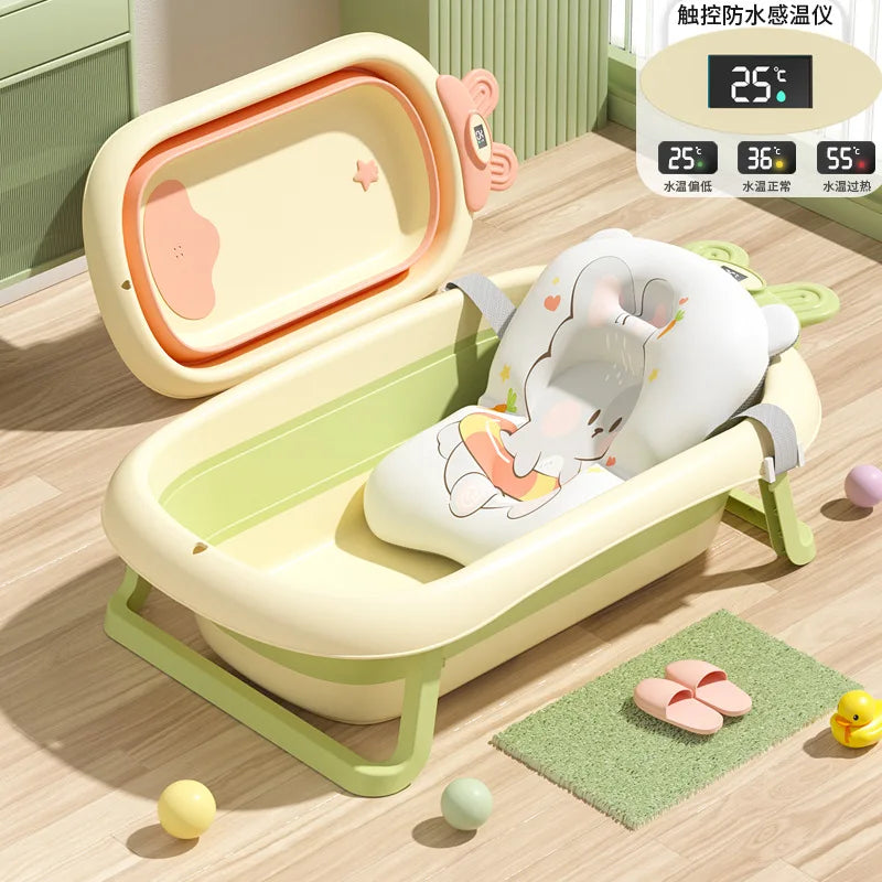 Gjør badetiden både morsom og behagelig med det sammenleggbare temperaturmåler badeskiktet for baby! Utformet for maksimal bekvemmelighet, er dette sammenleggbare badekaret ideelt for å spare plass og sørge for at babyen din er trygg. Med en vanntett temperaturmåler, garanterer det at vannet til den lille alltid har den optimale temperaturen. Når det ikke er i bruk, kan du enkelt folde det sammen for å lagre det uten problemer. Badetid har nettopp blitt enkelt!