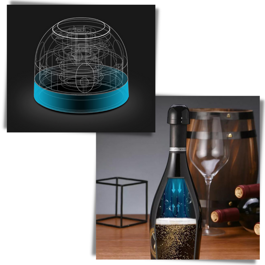 Smaken av en flat champagne eller vin som har mistet buketten etter noen dager i en dårlig forseglet flaske – høres det kjent ut? Fra nå av kan du unngå det. Hold drikkevarene dine friske og sprudlende og opprettholder smaken med denne proppen. Den er designet for å forsegle flaskene i timer eller til og med dager. Du trenger ikke å slite med vanskelige korker.