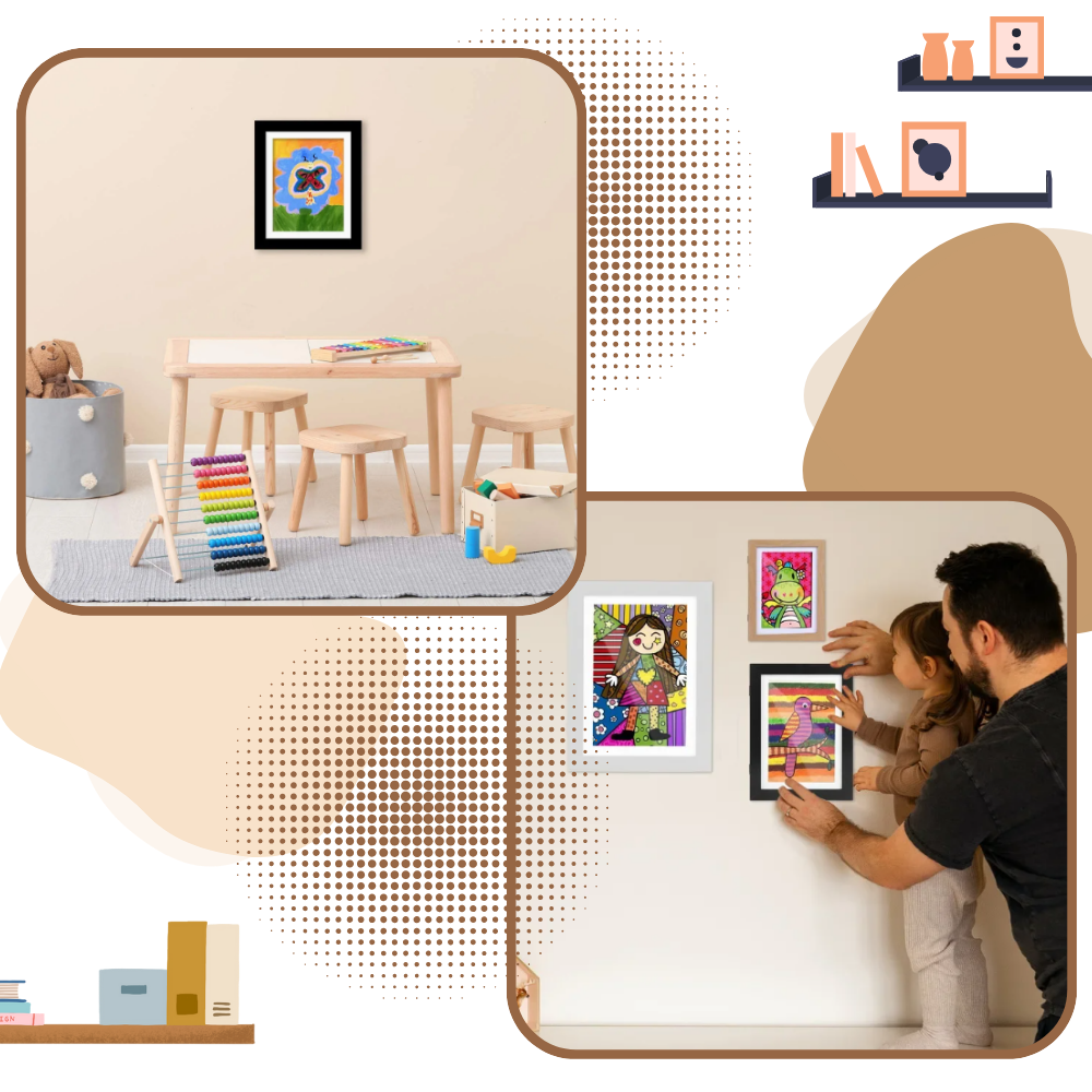 Hvert kunstverk barnet ditt skaper kan bli et mesterverk som er verdt å vise frem. Glatt Finish Små Davinci-Rammer gir en spennende måte å vise frem kunstverk på, med livlige fargevalg, inkludert klassisk tre, elegant hvitt og fascinerende sort. De mange ulike fargene gjør at du kan mikse og matche for å skape en gallerivegg i ethvert rom, noe som gir hjemmet ditt et personlig preg. Enten du henger en enkelt ramme eller flere ved siden av hverandre, gjør disse rammene det enkelt å fremheve barnets kunstneriske reise og forvandle veggene dine til en leken og inspirerende kunstutstilling som vokser i takt med barnet.