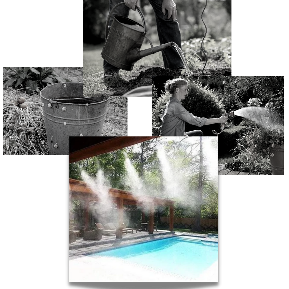 Sprinklerne i dette vanningssystemet kan settes til en tåke- eller sprøytemodus. I denne modusen er vann som sprayes fra sprinklerne i form av en fin tåke. Dette hjelper vannet til å gå lenger enn med tradisjonelle metoder