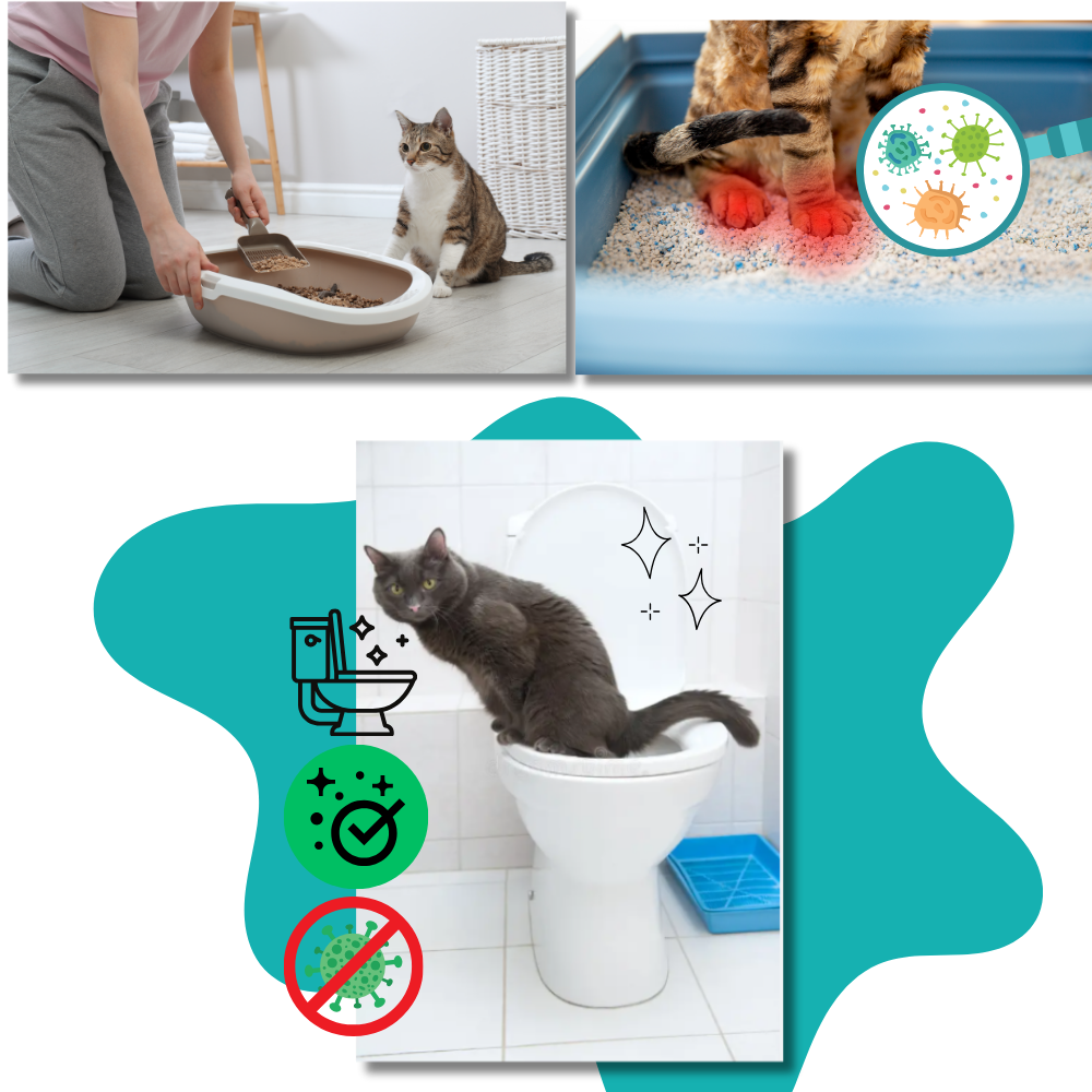 Slipp kattekassa med Kattesand Toalettrener for Enkel Trening. Lær katten din å bruke toalettet, noe som minimerer lukt og holder hjemmet ditt renere. Ideelt for moderne kjæledyreiere.