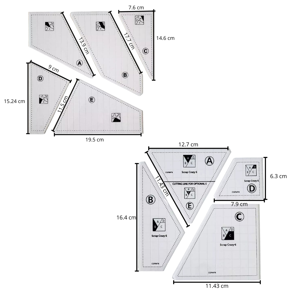 Hvis du er en quilter som ønsker å spare tid på målinger og kutting, kan denne pakken være svaret du har lett etter. Før du trykker ned malen vil den gli fritt over stoffet du legger den på. Når det er påført trykk, griper malen stoffet, og holder det på plass for å hindre at stoffet glir mens du klipper. På den måten unngår du også feilkutt. Stofftuppene kan også klippes etter behov for å sikre at delene sys pent sammen.