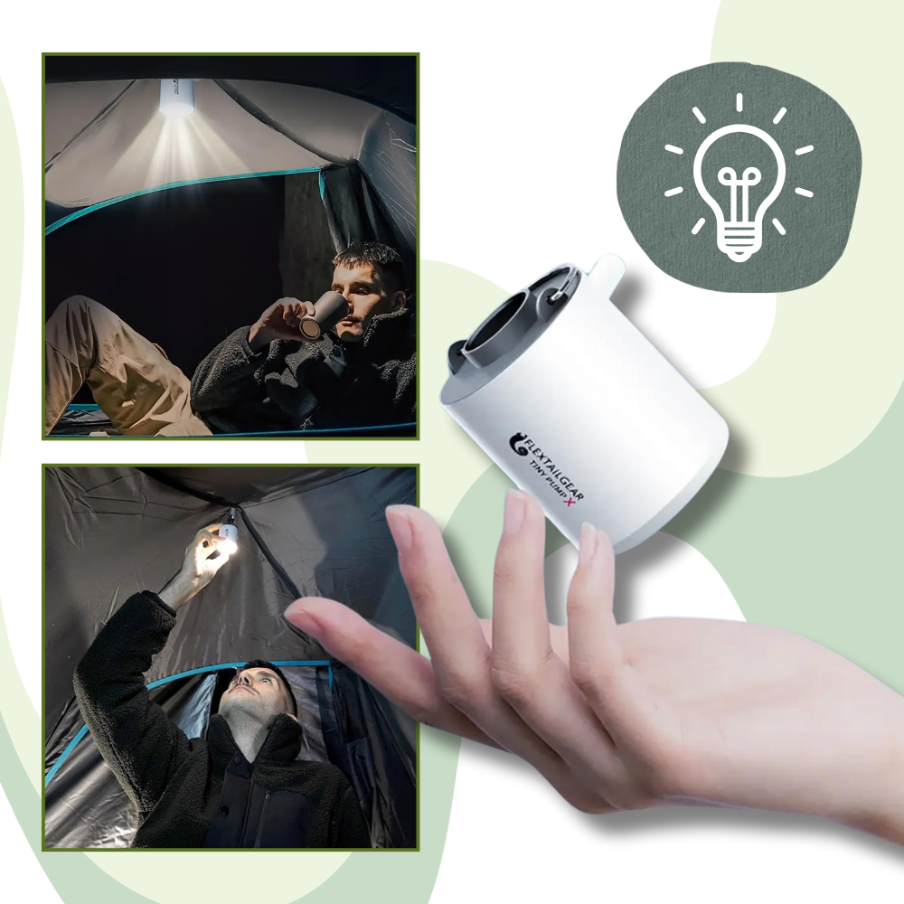 Liten Pumpe for Rask Oppblåsing/Tømming er mer enn bare en luftpumpe, den er også utstyrt med et kraftig, innebygd LED-lys som er perfekt for bruk om natten. Enten du skal slå leir etter mørkets frembrudd eller trenger en pålitelig lyskilde på kveldsturen, gir pumpens LED-lys god belysning. Med tre lysstyrkemoduser, inkludert en SOS-blinkemodus, kan du justere lyset etter dine behov, fra en mild glød inne i teltet til en sterk stråle som lyser opp omgivelsene. LED-lyset er energieffektivt og gir langvarig lysstyrke uten å tømme batteriet, slik at du aldri sitter igjen i mørket. Denne ekstra funksjonen forvandler Liten Pumpe for Rask Oppblåsing/Tømming fra et enkelt verktøy til en allsidig gadget som er uunnværlig på alle utendørsopplevelser.