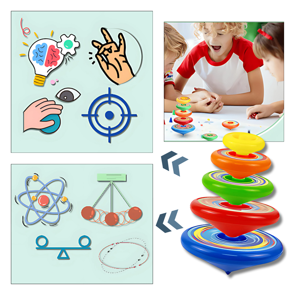 Oppdag det gøyale og lærerike med Den Morsomme Gyro-Leken Med Flere Lag. De fargerike toppene kan stables og snurres perfekt, og gir uendelig moro med en enkel utløser. Ideell for ferdighetsutvikling og timevis med underholdning.
