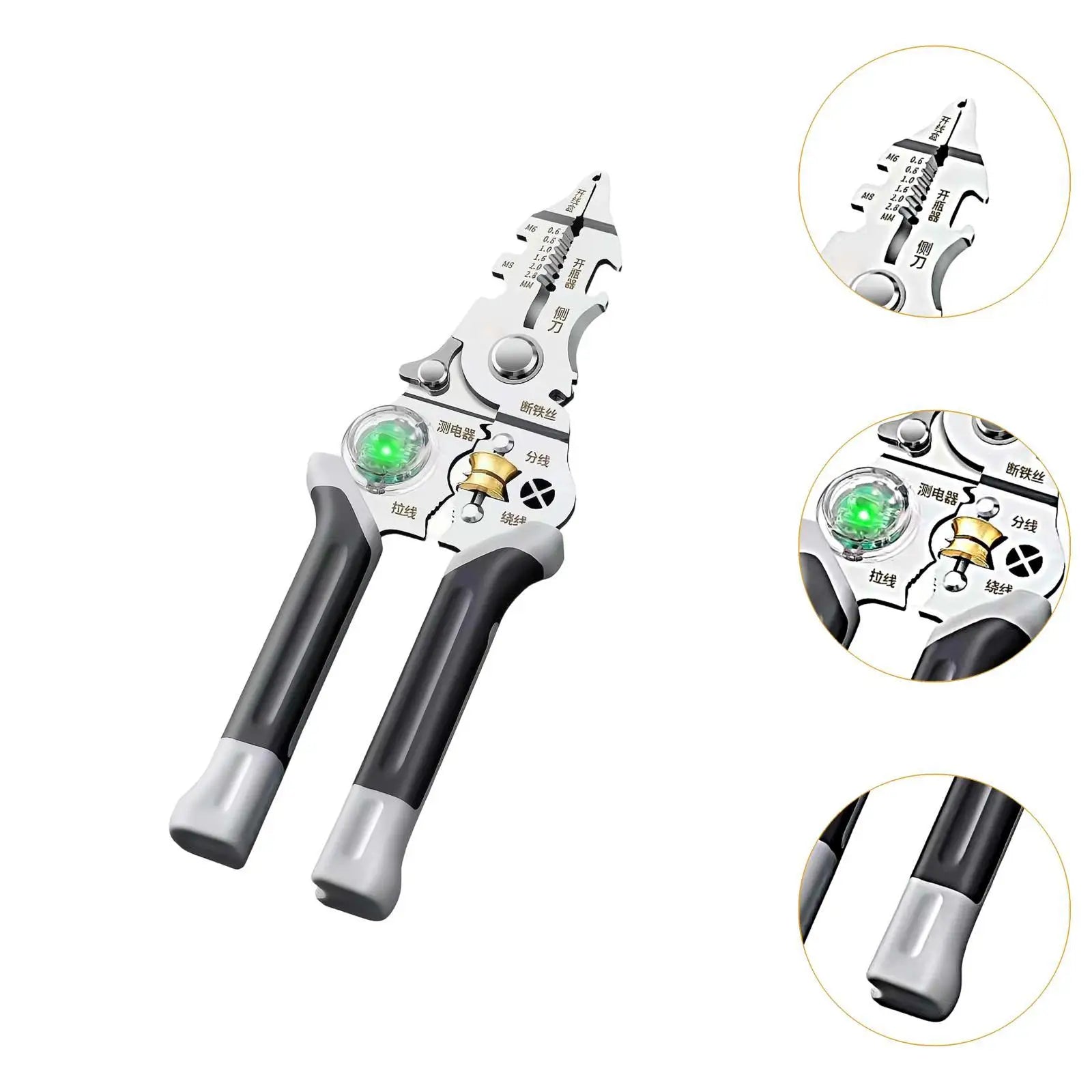 Multi-funksjons ledningsstripper med spenningsdetektor er en uunnværlig del av ethvert profesjonelt eller hjemmeverktøysett. Designet for elektrikere, teknikere og entusiaster, forener dette allsidige verktøyet ledningsstripping, kutting og spenningsdeteksjon i et enkelt og brukervennlig design. Laget av kvalitet rustfritt stål, garanterer det holdbarhet og langvarig ytelse, selv ved hyppig bruk.