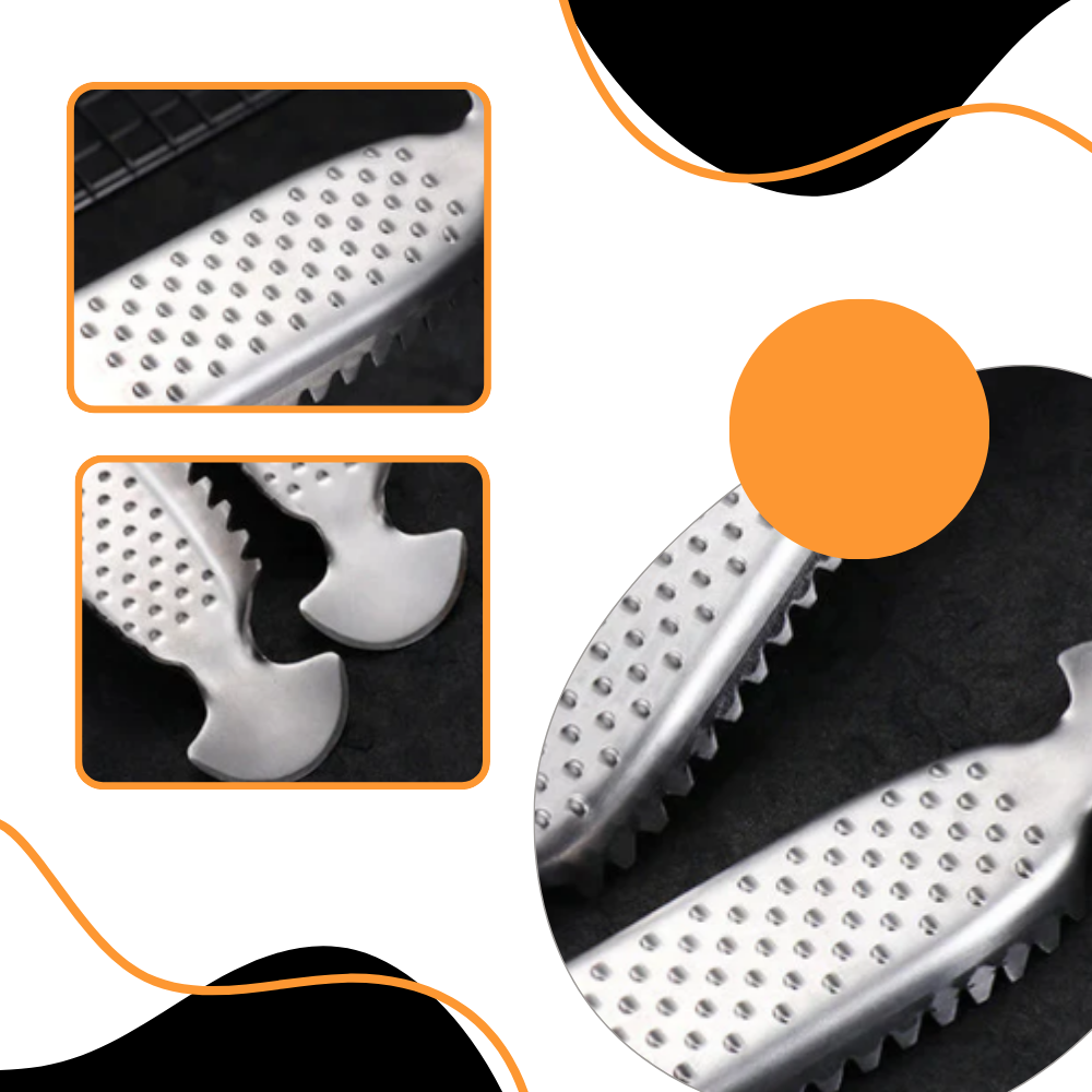 Denne skjellskjæreren er laget av høy kvalitet rustfritt stål og er skapt for å vare. Enten det regner eller er solfylt, i ferskvann eller saltvann, er den klar for å takle enhver fisk uten bekymringer om rust eller slitasje. Den robuste stålstrukturen er sterk og motstandsdyktig mot bøying og korrosjon, selv ved hyppig bruk. Ha den med på fisketurene eller bruk den hjemme - dette rustfrie kraftverket vil aldri svikte deg. Den holder seg skarp, solid og alltid klar for neste sjømatmåltid.
