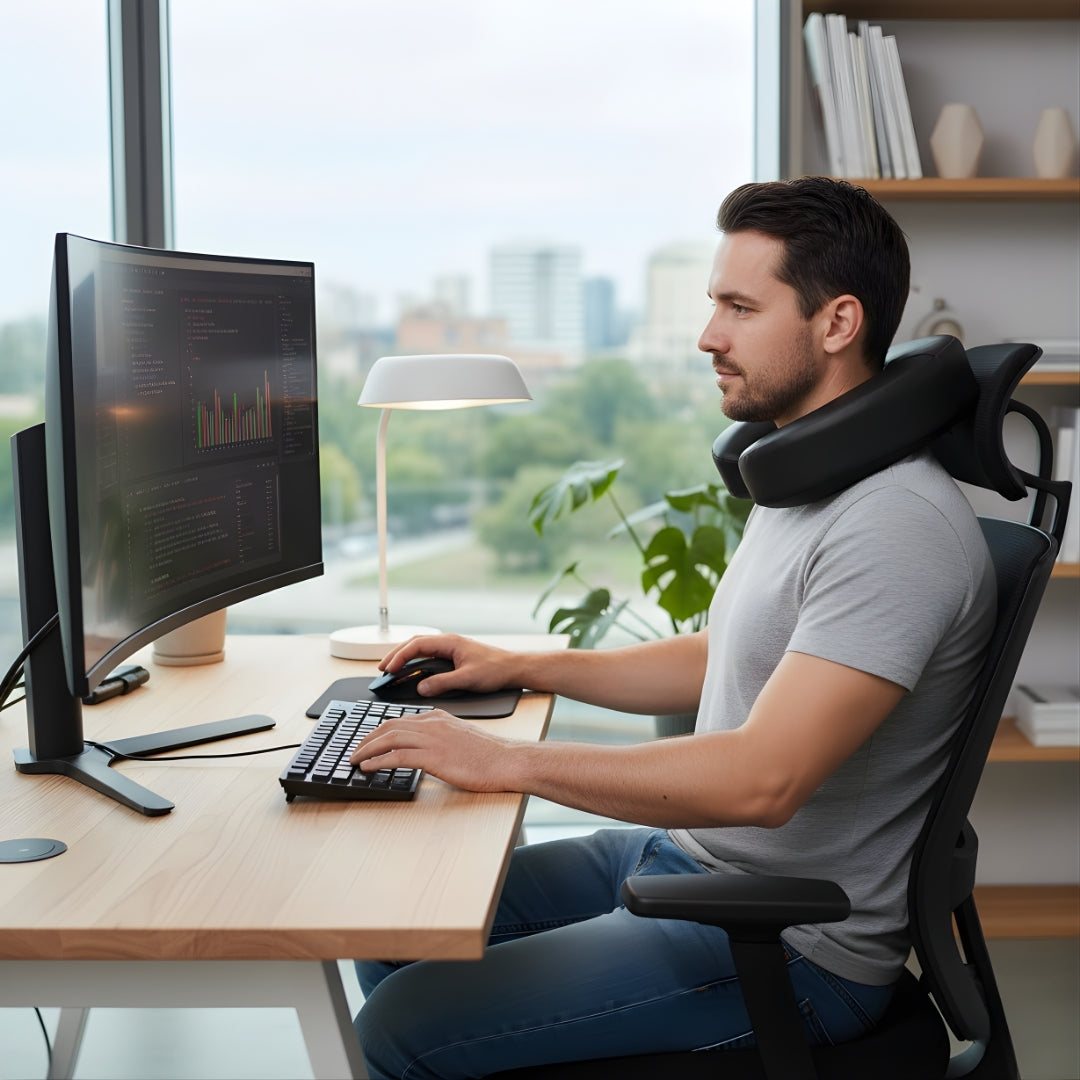 Den Norvo NeckEase er utstyrt med en førsteklasses adaptiv minneskumkjerne og har en ergonomisk U-form som tilpasser seg perfekt etter nakken din, slik at du får riktig støtte og komfort gjennom hele dagen. Den er lett og enkel å ta med seg, noe som gjør den perfekt for flyreiser, bilturer, togreiser, eller til og med for å slappe av hjemme eller på jobben.