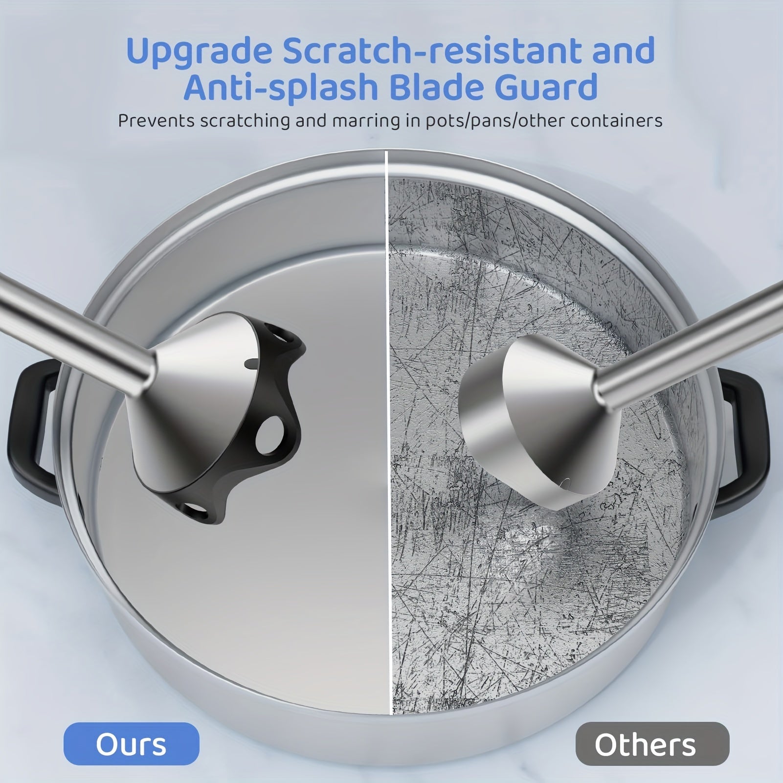 - Ripefritt hus: Ta vare på grytene, pannene og skålene dine med mikserens ripefrie ytre. Den nøye konstruerte blandestangen gjør det mulig å blande direkte i kokekarene uten å bekymre deg for riper, noe som forenkler rengjøringen betydelig.