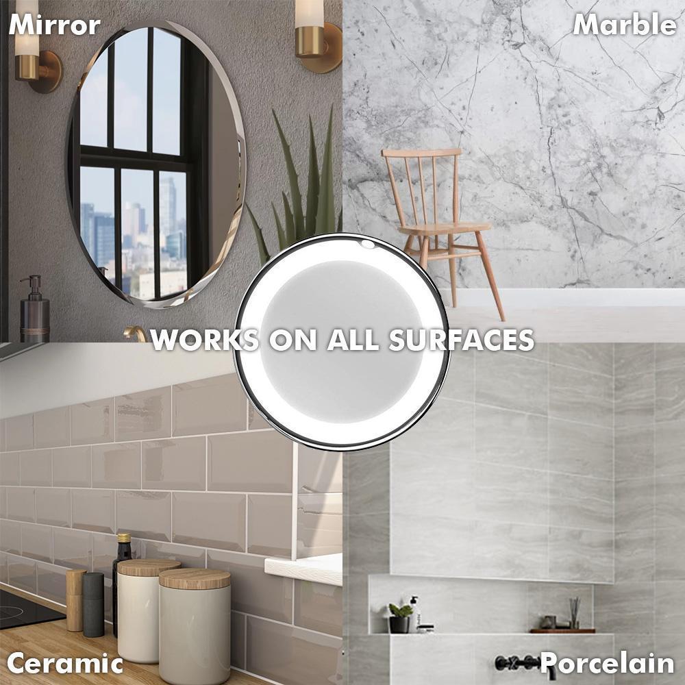 • Stabil base. Flytt dette speilet på benken så mye du ønsker. Suksjonskoppen er svært solid, så det vil ikke velte.