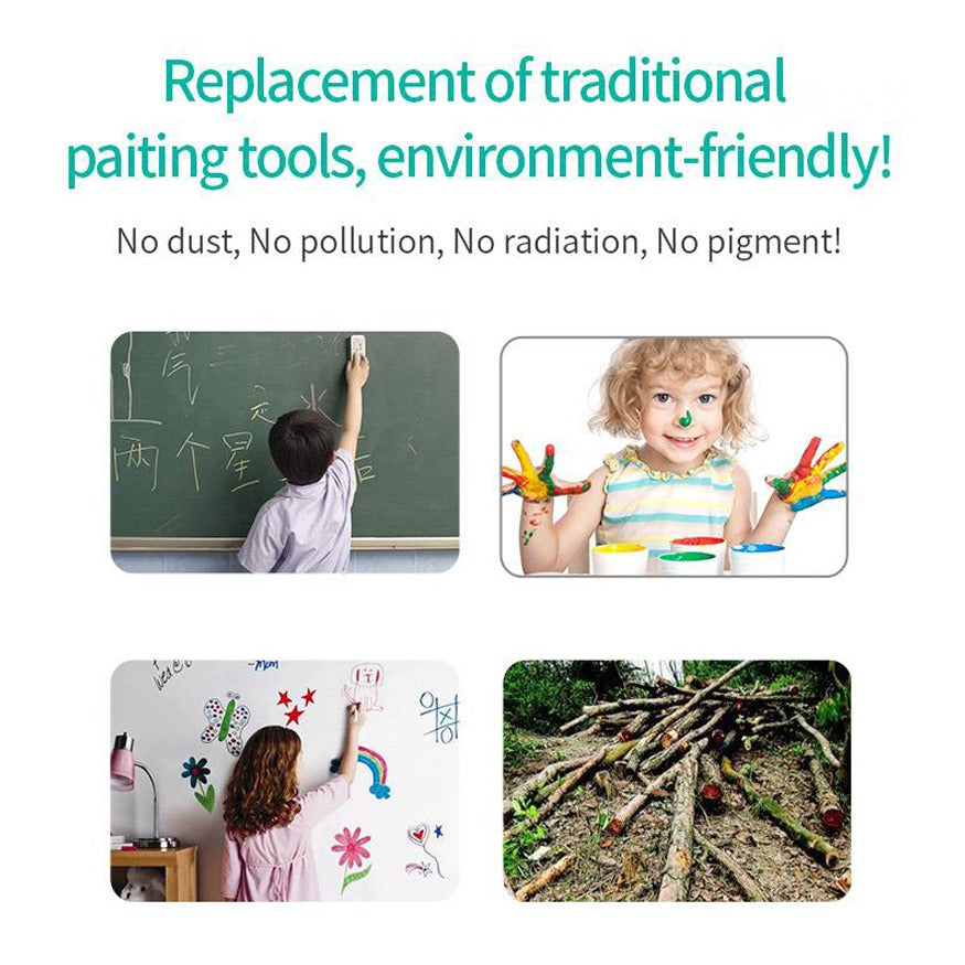 - Bærekraftig skriveområde: Den gjenbrukbare skriveflaten tillater barna å skisse, tegne og lage noter uten behov for papir eller fargeblyanter.