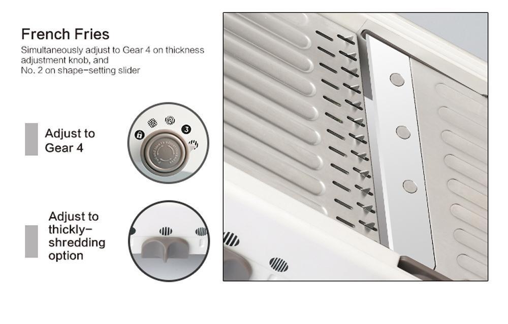 - 18 forskjellige størrelser. Skjær og riv i 18 varierte størrelser og bredder. Gå for ultra-tynne skiver eller lag tykkere, hva enn som passer deg best.