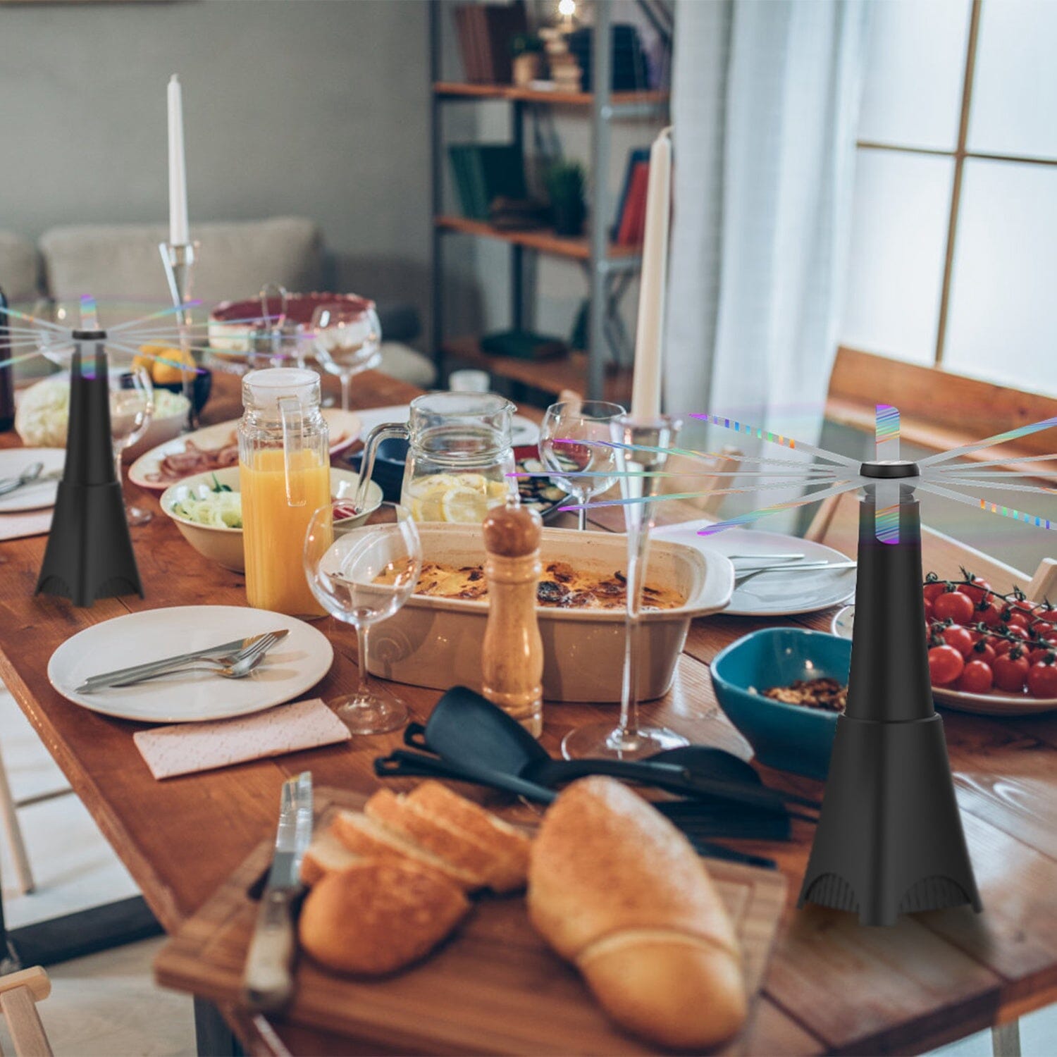 - Effektiv Fluebeskyttelsesvifte: De reflekterende designene på denne viften skaper en ubehagelig barriere over bordet ditt som hindrer plagsomme fluer eller insekter fra å komme til maten din. Husk å plassere maten innenfor viftes optimale rekkevidde for best resultat.
