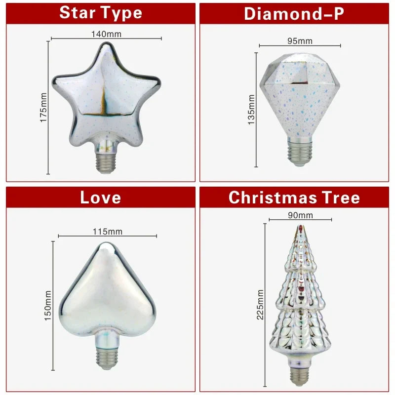 📌 Fengslende 3D Fyrverkeri Belysning: Hver pære produserer et levende, fargerikt spektrum med en 360° belysningsvinkel – ideell for sammenkomster, feiringer, eller som et blikkfang i hjemmet ditt.