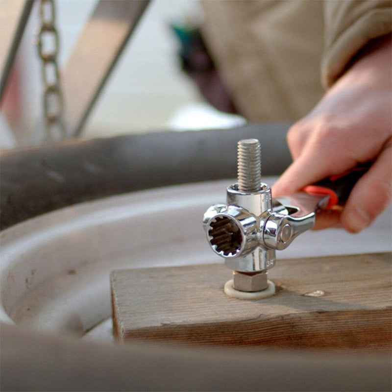 Multifunksjonsnøkkel med 52 funksjoner og 360-graders rotasjon, tilpasset for forskjellige mutterstørrelser og enkelt å bruke.