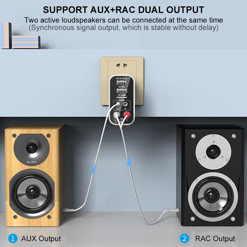 Tilkoblinger: AC 100~240V/USB/AUX/RCA/TF-kort