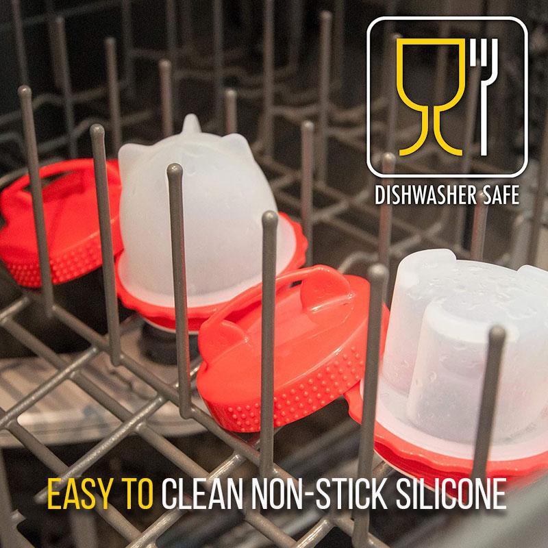 Non-stick silikoneggkopper - Tilsett litt olje for å unngå at eggene kleber seg til koppene. Den termodynamiske designen sørger for at eggene koker som om de er i skall. Perfekt til bløtkokte eller hardkokte egg, rørede egg, mini-omeletter, egg Benedict og mer.