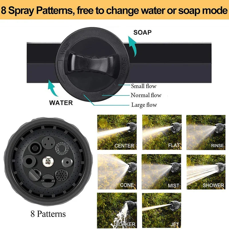 ● Robust Konstruksjon: Laget av høyverdig materiale som slitesterk ABS-plast eller metall, er 8-i-1 Høytrykks Slangedyse konstruert for å tåle hyppig bruk og utfordrende værforhold, noe som sikrer langvarig ytelse.