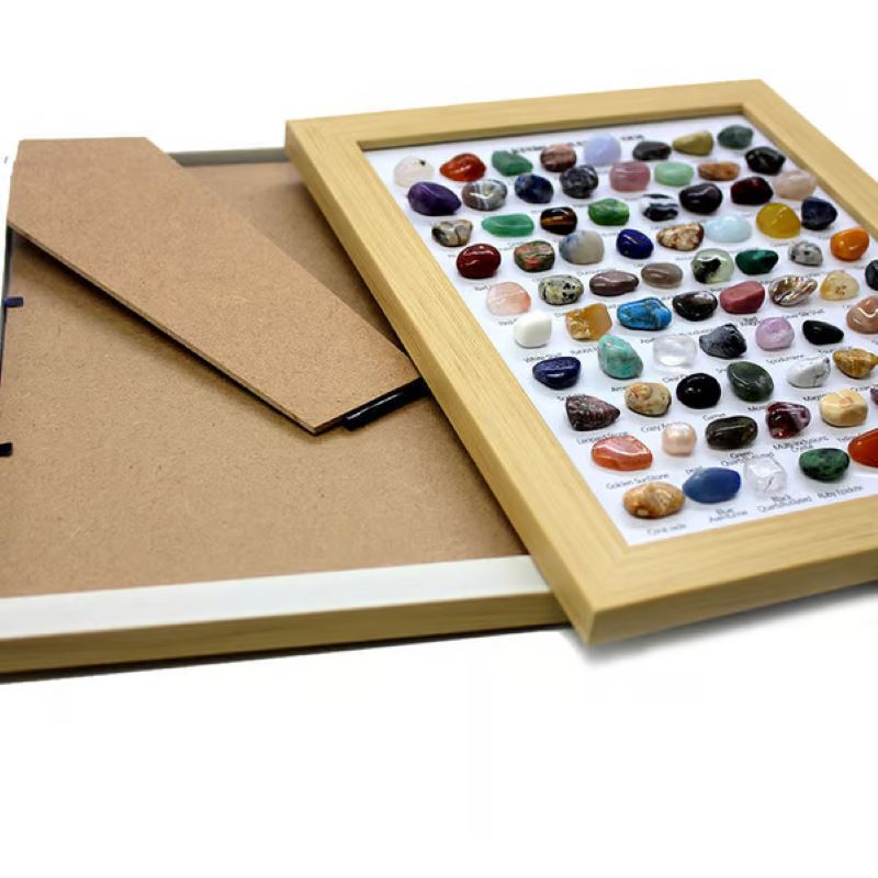- Høy Kvalitet Utstilling: Edelstenene er plassert i en vakker treramme, sikkert montert for enkel visning og beskyttelse.