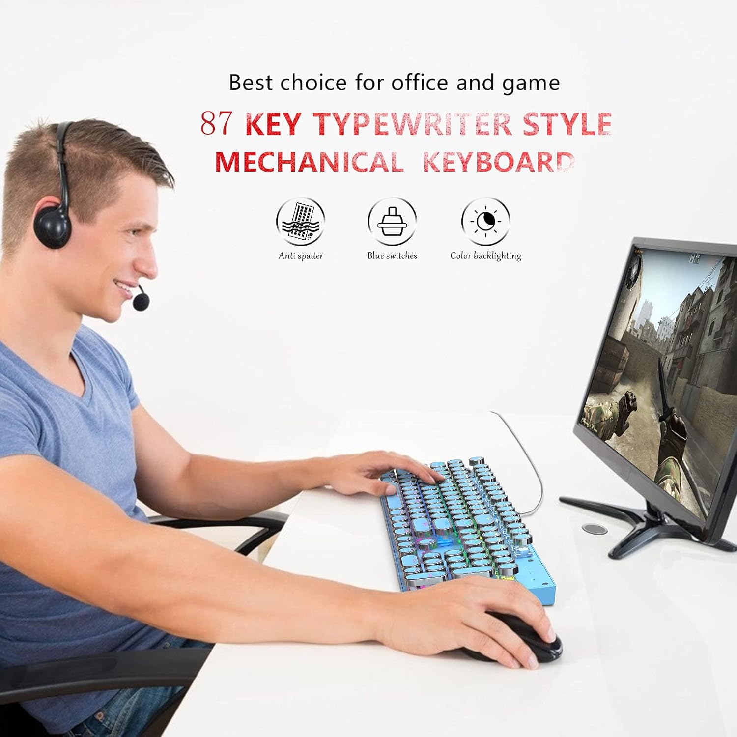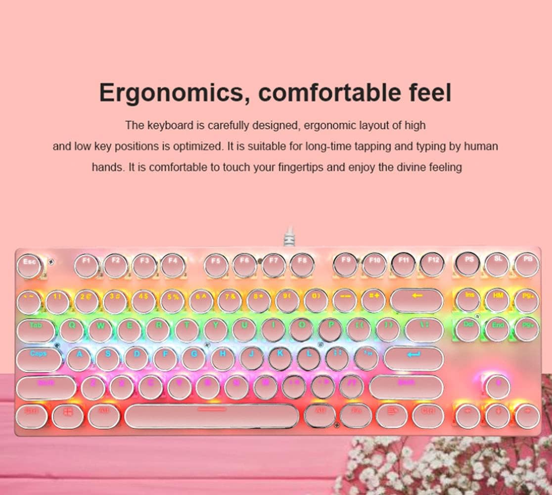 Dette 87-tasters tastaturet leverer presis mekanisk inngang med anti-ghosting støtte. RGB-bakgrunnsbelysning tilbyr 9 moduser med justerbar lysstyrke. Punk-stil taster er holdbare og sprutsikre, mens justerbare føtter sikrer en komfortabel vinkel.