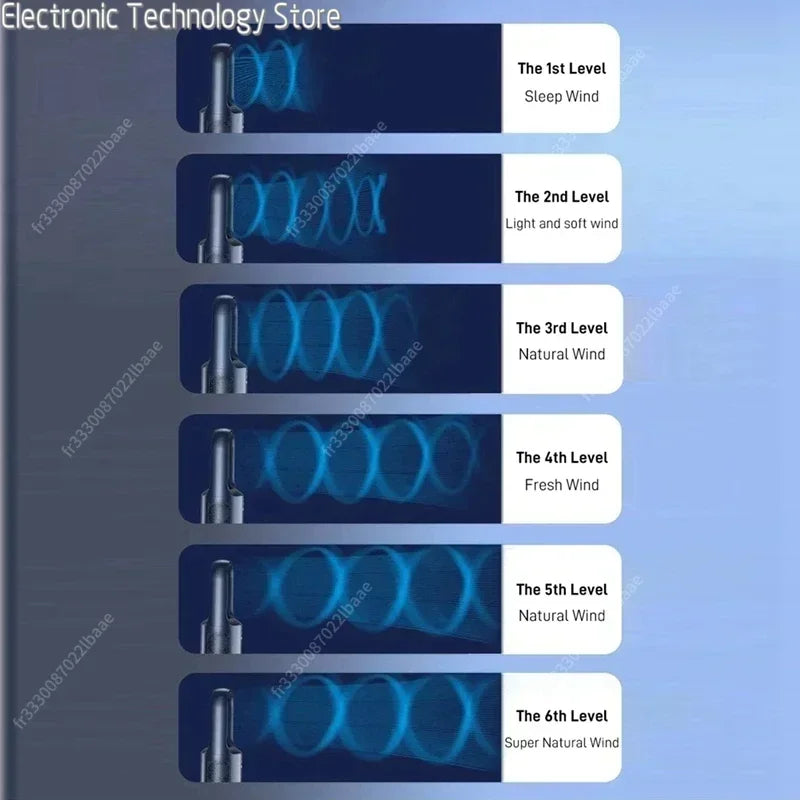 ✨ 6 vindhastigheter: Fra en mild bris til en kjølig luftstrøm – velg komfortnivået du ønsker.