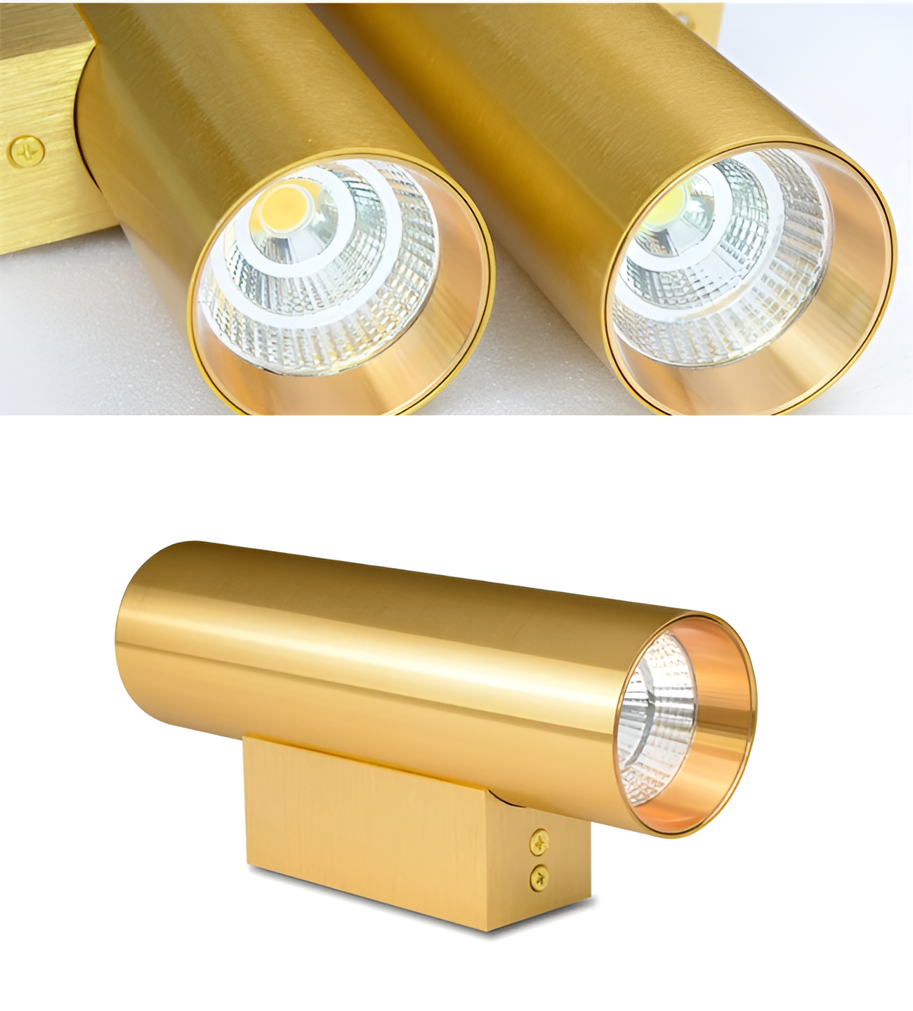 Denne stilige vegglampen, laget av førsteklasses aluminium og i en luksuriøs gullfarge, forener moderne estetikk med tidløs eleganse. Den doble belysningsfunksjonen gir deg fleksibilitet til å justere lyset i forskjellige retninger for å fremheve bestemte områder av rommet eller skape en bredere, stemningsfull effekt. Denne lampen gir et varmt og imøtekommende lys, perfekt for å skape den ønskede atmosfæren.