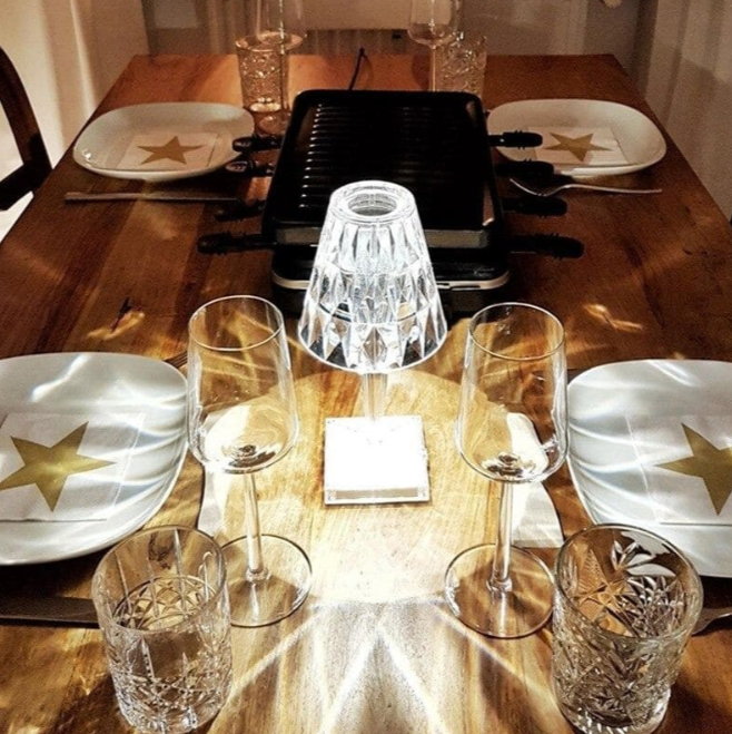 Akrylkrystall Bordlampen er designet for å både belyse og fascinere. Dens klare struktur reflekterer lyset på en vakker måte og skaper et varmt, innbydende miljø – ideelt for stearinlysmiddager, avslappende kvelder, eller som et elegant dekorativt element.