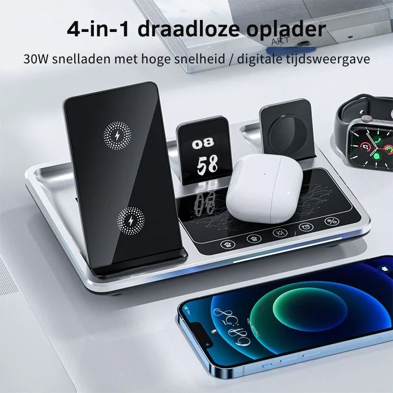 Med den allsidige ladestasjonen kan du endelig få bukt med det teknologiske rotet. Denne moderne alt-i-ett-løsningen lar deg lade flere enheter samtidig, samtidig som den sparer plass. Den er perfekt for hjemmet, kontoret eller på reise – og kombinerer funksjonalitet med et stilrent utseende, noe som gjør den til den ideelle løsningen for daglig bruk.