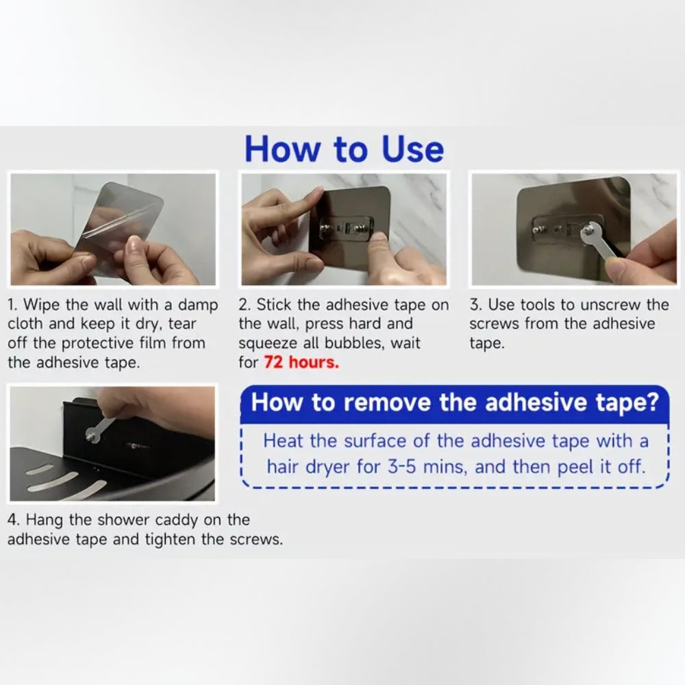 Fjern kaoset på badet med vårt elegante hjørnedusjstativ. Denne rustfrie oppbevaringsløsningen omdanner effektivt et ubenyttet hjørne til praktisk lagring, og skaper et organisert og luksuriøst miljø uten innvendige hull. Perfekt for både baderoms- og kjøkkenlagring.