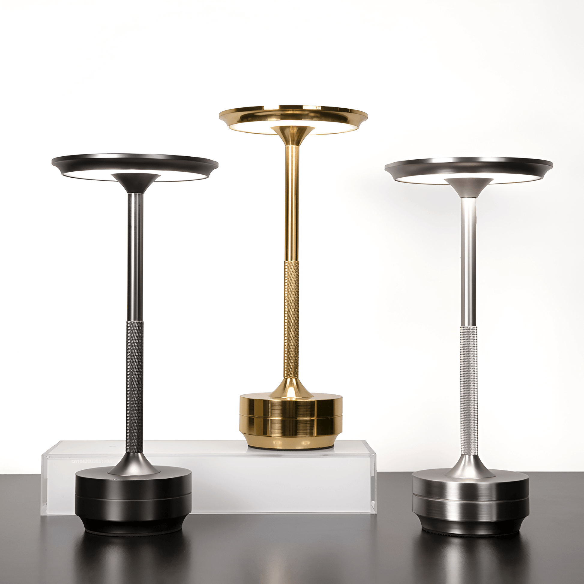 AmiGlow er laget av solid metall i tre elegante overflater: rustfritt stål, messing og matt svart aluminium. Den minimalistiske formen og det myke, miljøvennlige lyset harmonerer med både moderne og klassisk interiør.