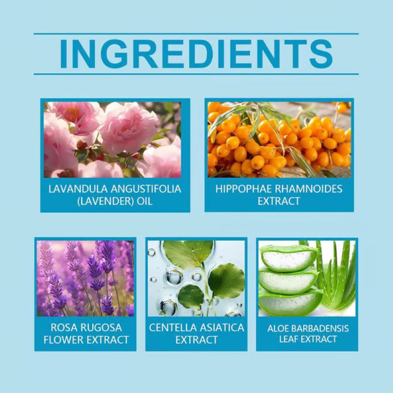 🌟Albumin og aloeekstrakt trenger dypt inn i huden, og gir intens fuktighet og umiddelbare løftende effekter. Andre naturlige ingredienser inkluderer Centella Asiatica-ekstrakt, Aloe Vera-ekstrakt, Lavendelolje, Havtorn-ekstrakt, Roseekstrakt.
