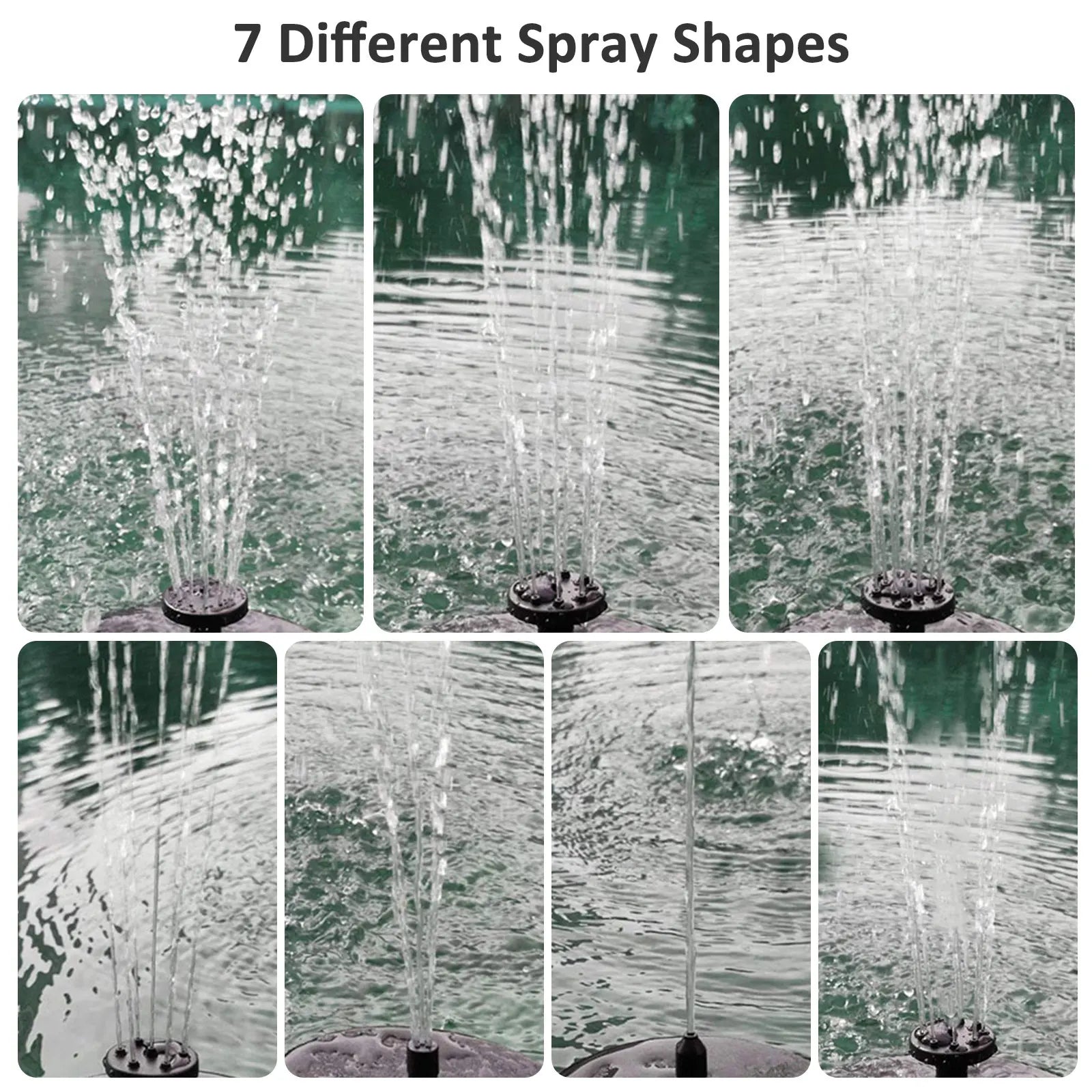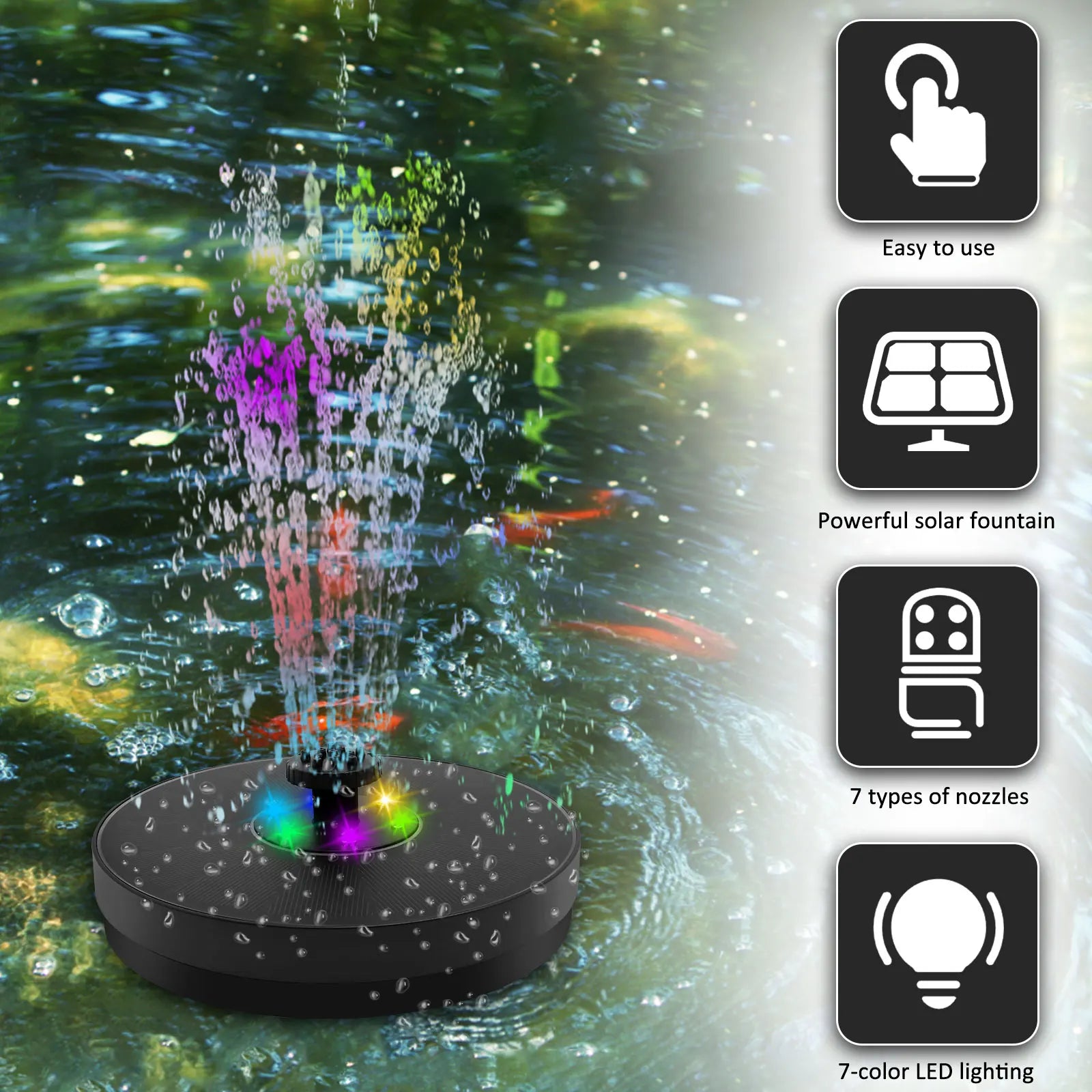 Norvo | AquaLume Solar Spring | 3W Solfontene med LED Fargevalg | Opptil 60 cm Fontenehøyde | 7 Munstykkevedlegg