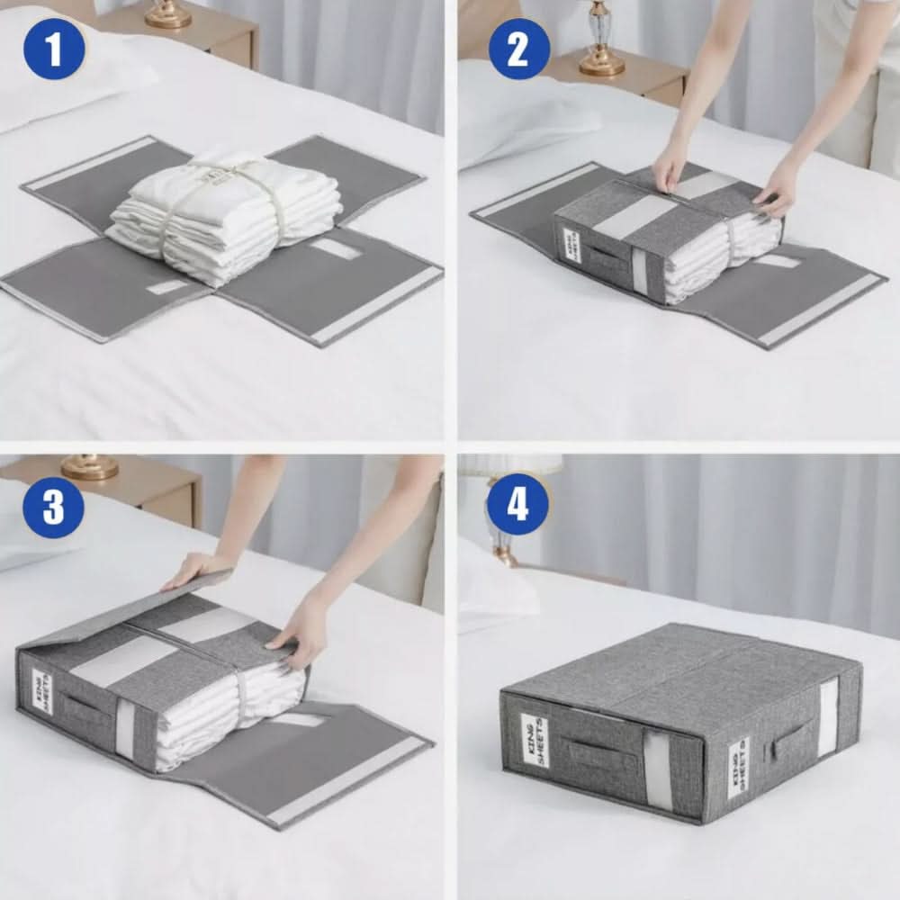 SheetStack™ er den geniale løsningen for å holde sengetøyet ditt rent, ordentlig og lett tilgjengelig. Dette sammenleggbare organiseringssystemet maksimerer lagringsplassen og sørger for at laken, putevar og tepper alltid holder seg glatte og godt organisert. Med et enkelt design passer SheetStack™ perfekt inn i alle typer skap, noe som gjør klesvasken til en enkel oppgave – et uunnværlig produkt for ethvert hjem.