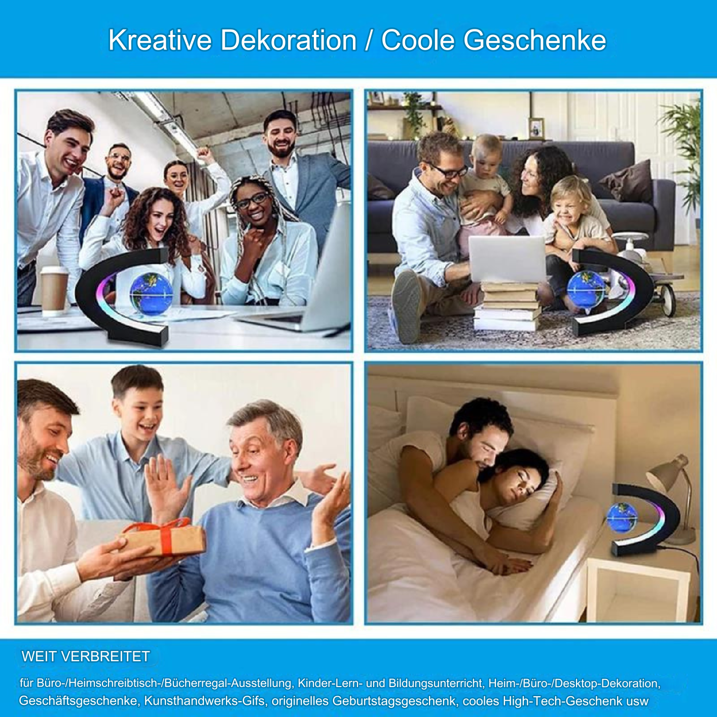 Denne fantastiske lampen forener en vakker skildring av jorden med et moderne design, der globusen svever og roterer innenfor en C-formet sokkel, opplyst av LED-belysning for et stilrent preg. Den smelter naturlig inn i ethvert rom, fungerer både som et imponerende dekorativt element og en kilde til kunnskap som vekker nysgjerrighet og inspirerer til samtaler. Ta dette magiske tilbehøret inn i hjemmet ditt for å skape en atmosfære av moderne oppdagelse og undring.